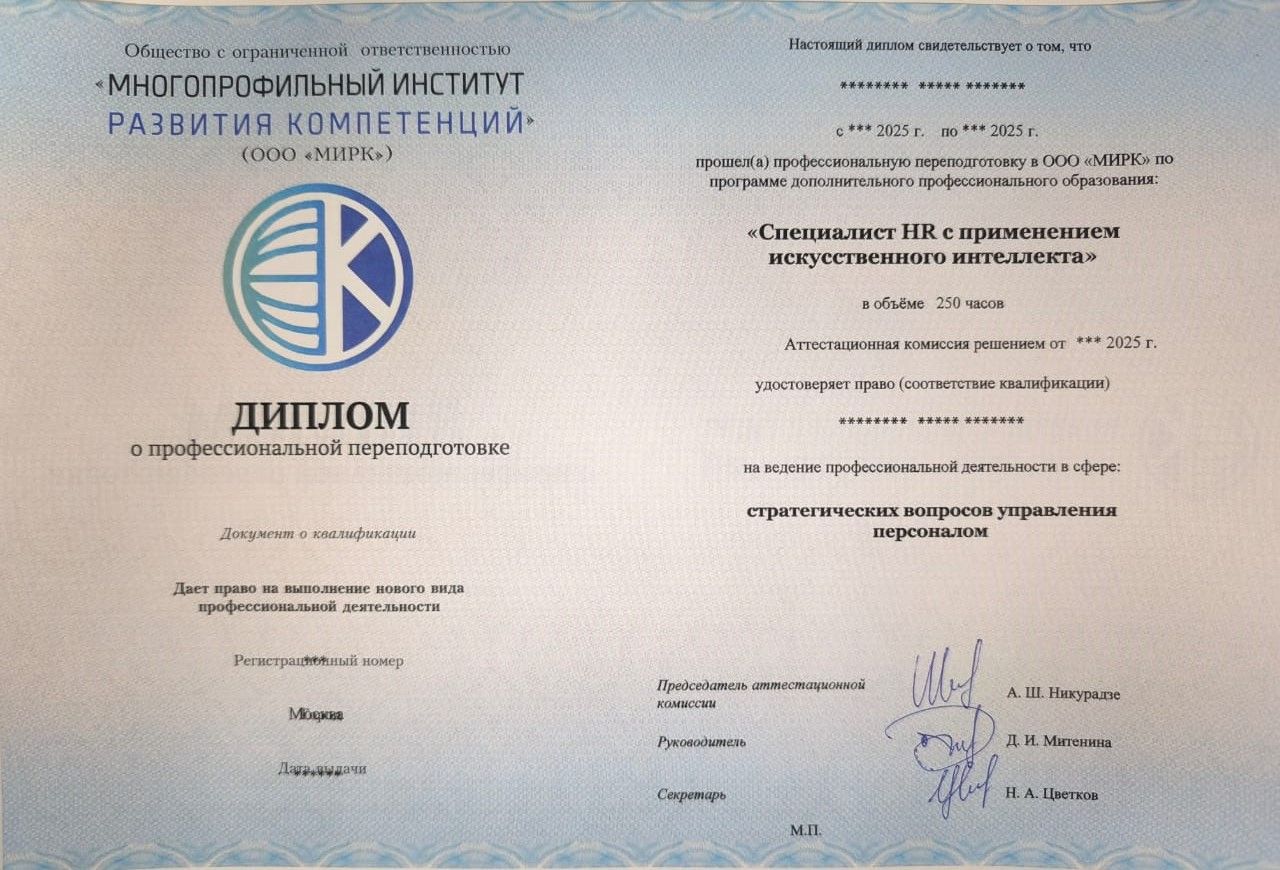 Запишитесь на курс "Специалист HR с применением искусственного интеллекта" и станьте HR-профессионалом будущего! Ваши новые навыки откроют вам двери к высоким должностям и достойной оплате труда!